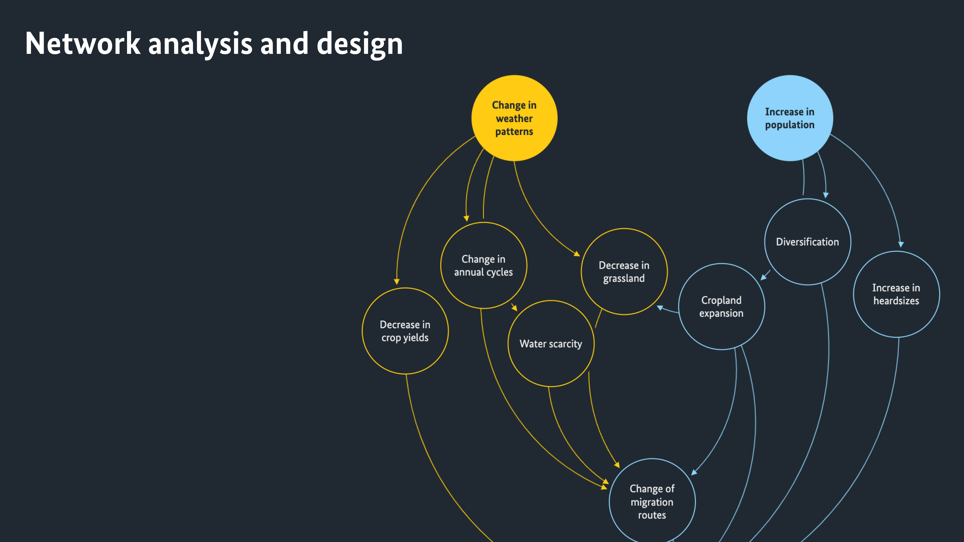 This global view is complemented by an in-depth case study: the farmer-herder conflicts in the Sahel region. By unfolding the layers of influence step-by-step, we can explain in detail how the long-term effects of climate change can have adverse effects in already conflict ridden regions, or might even spark new conflicts.