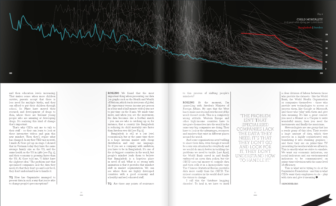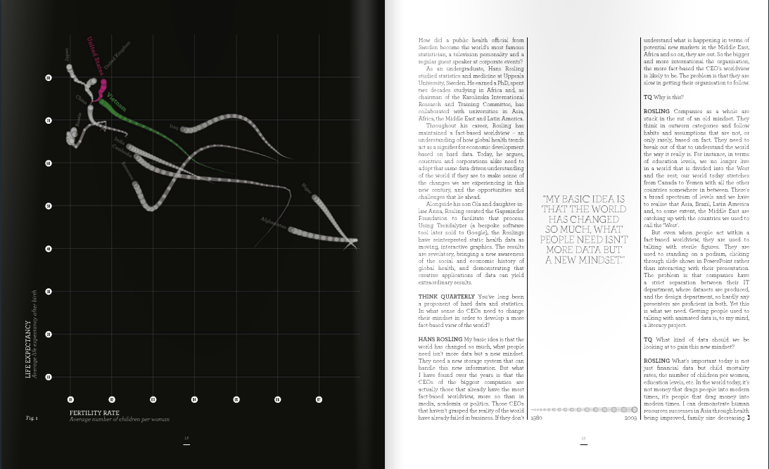 I was asked to remix two of the famous Gapminder bubble graphics to illustrate an interview with Hans Rosling for Google's "Think Quarterly" Magazine.