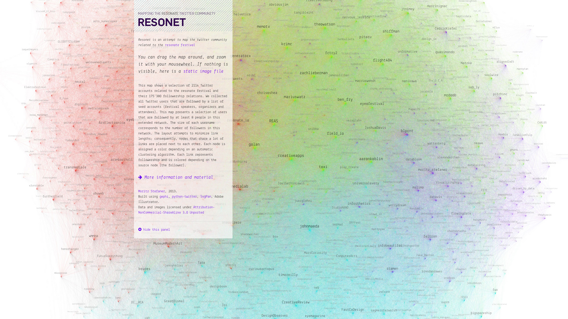 Resonet is an attempt to map the twitter community related to the resonate festival.