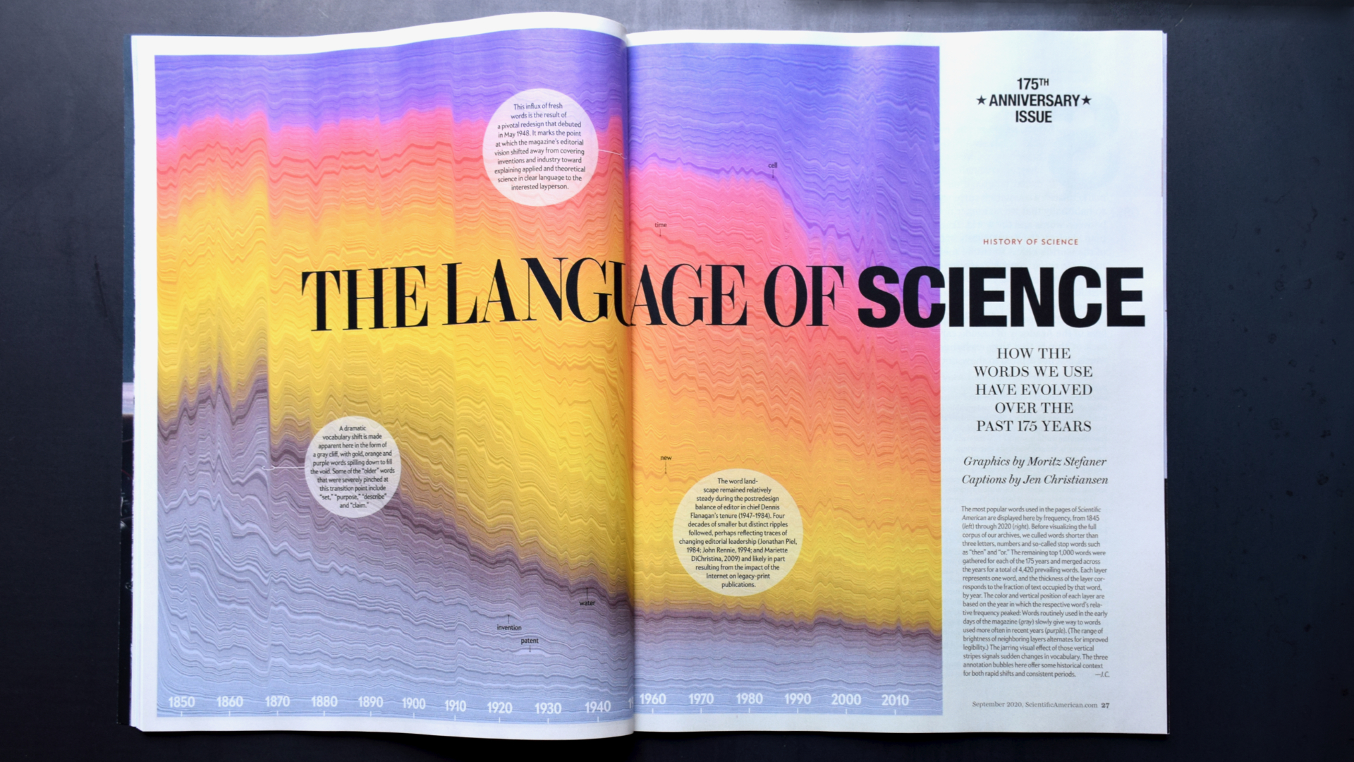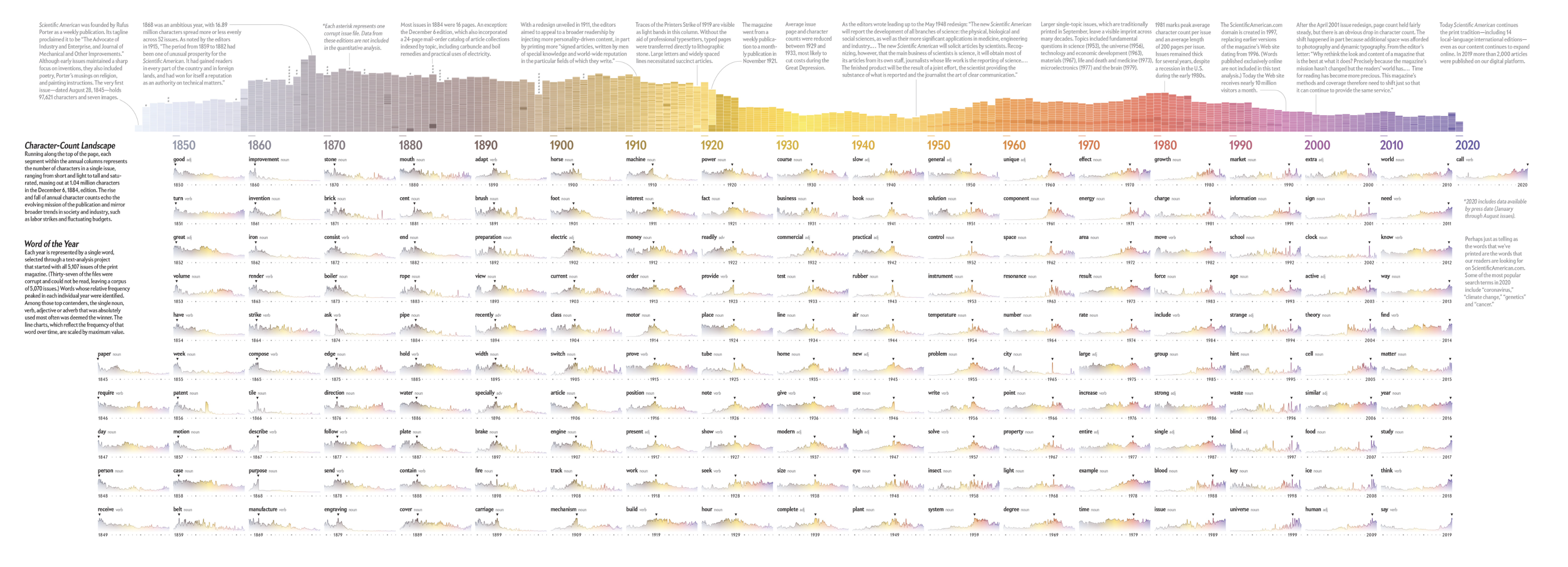 On the occasion of the 175th anniversary of the magazine, Scientific American invited me to explore their archive of 5'107 print issues. The results are a fascinating glimpse into how the language of science reporting has evolved.