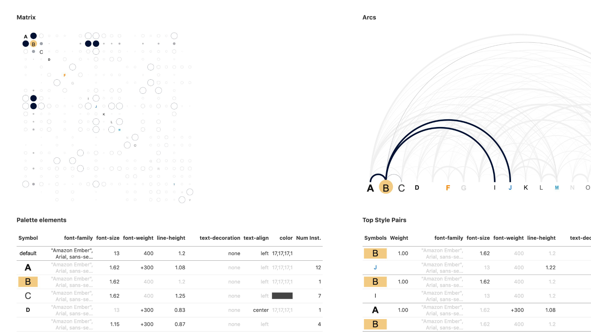 We did analogous work on typographic "palettes" — what is the set of typeface features a specific design system uses, and how are they used together and interact with each other?