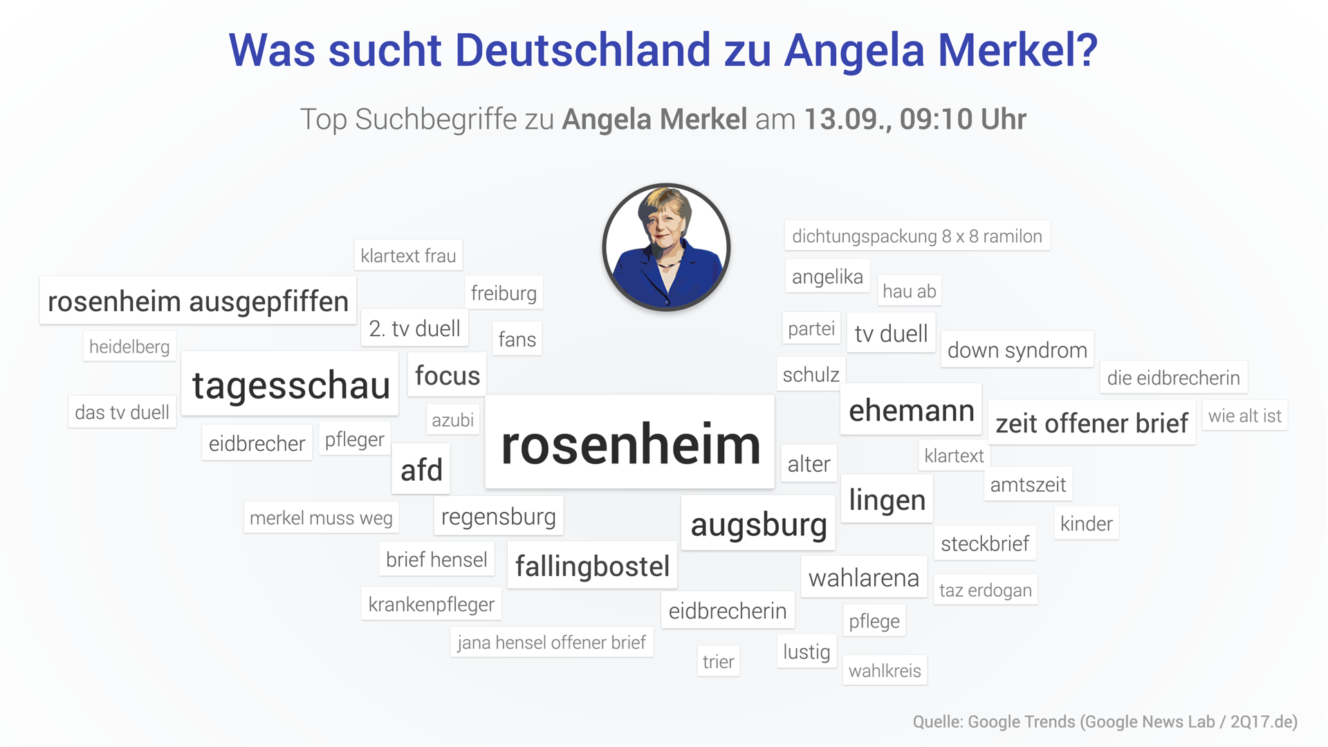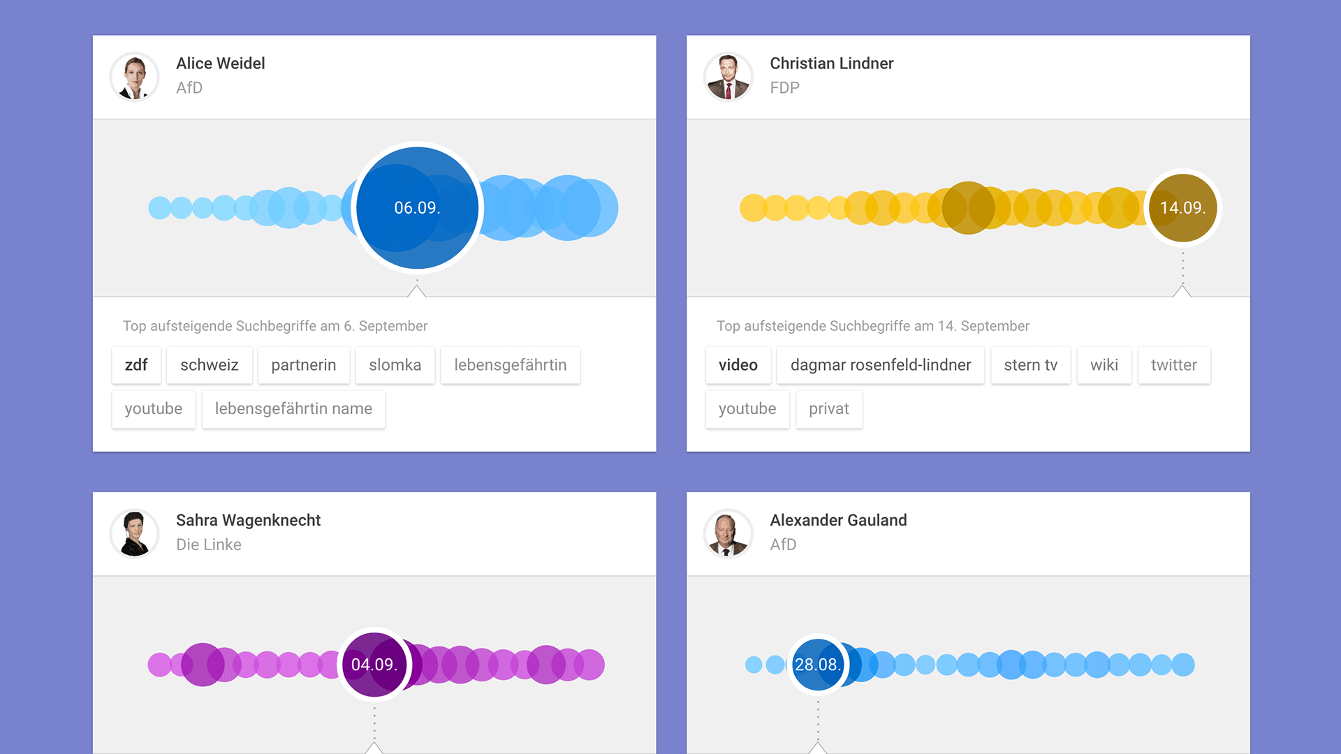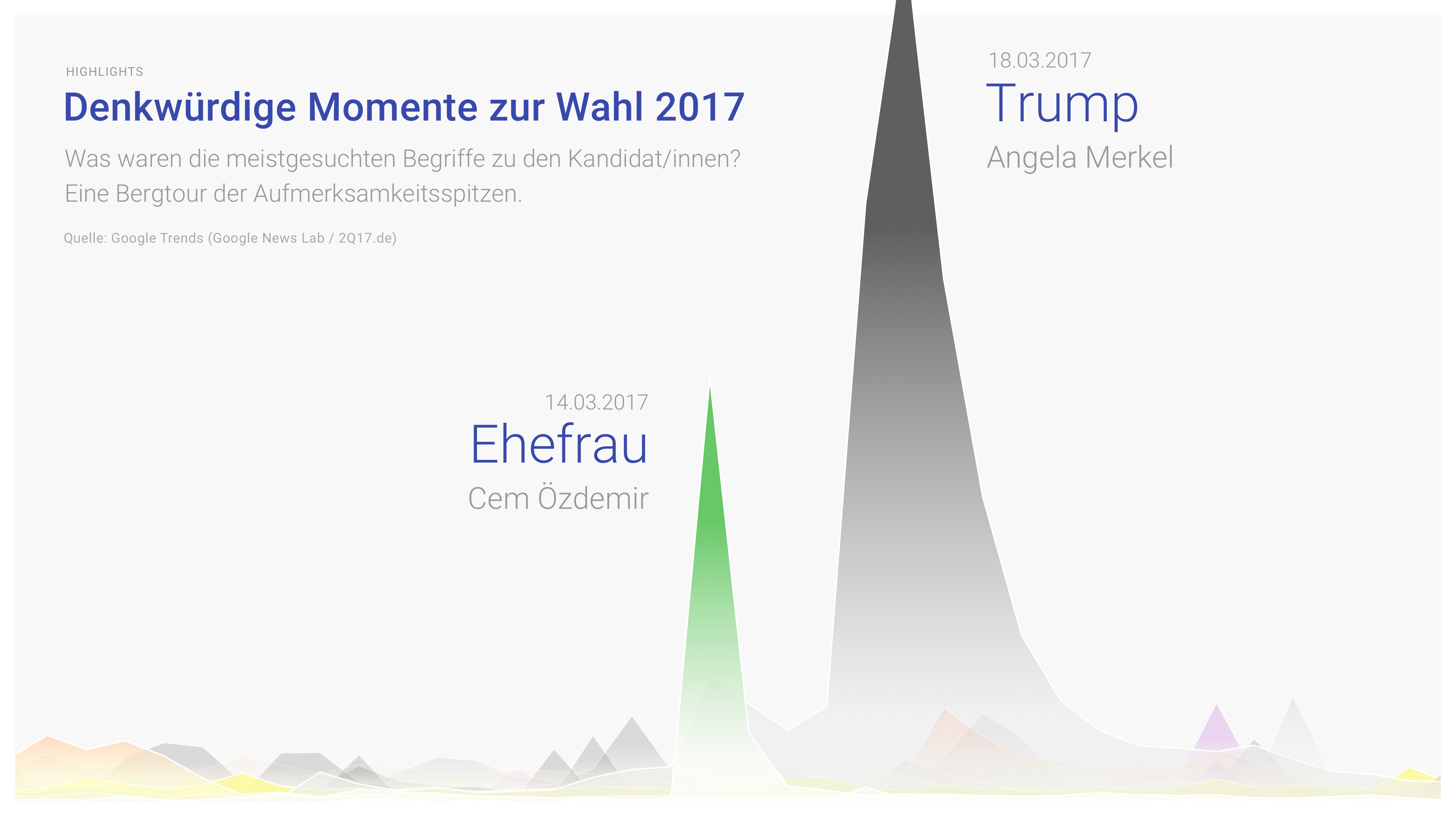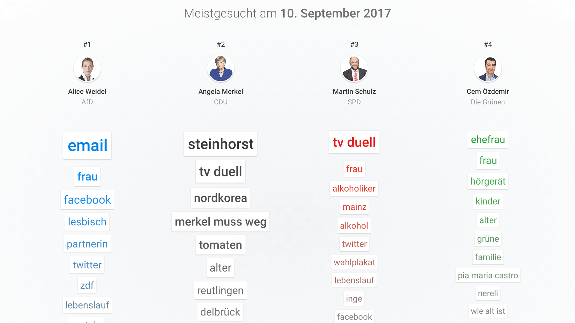 Sometimes, the data also provides us with real puzzles: We saw searches for Cem Özdemir’s wife peak tremendously just on one specific day in March, and we really didn’t understand why — until we learned she was part of a question in a big quiz show here in Germany. Live and learn!