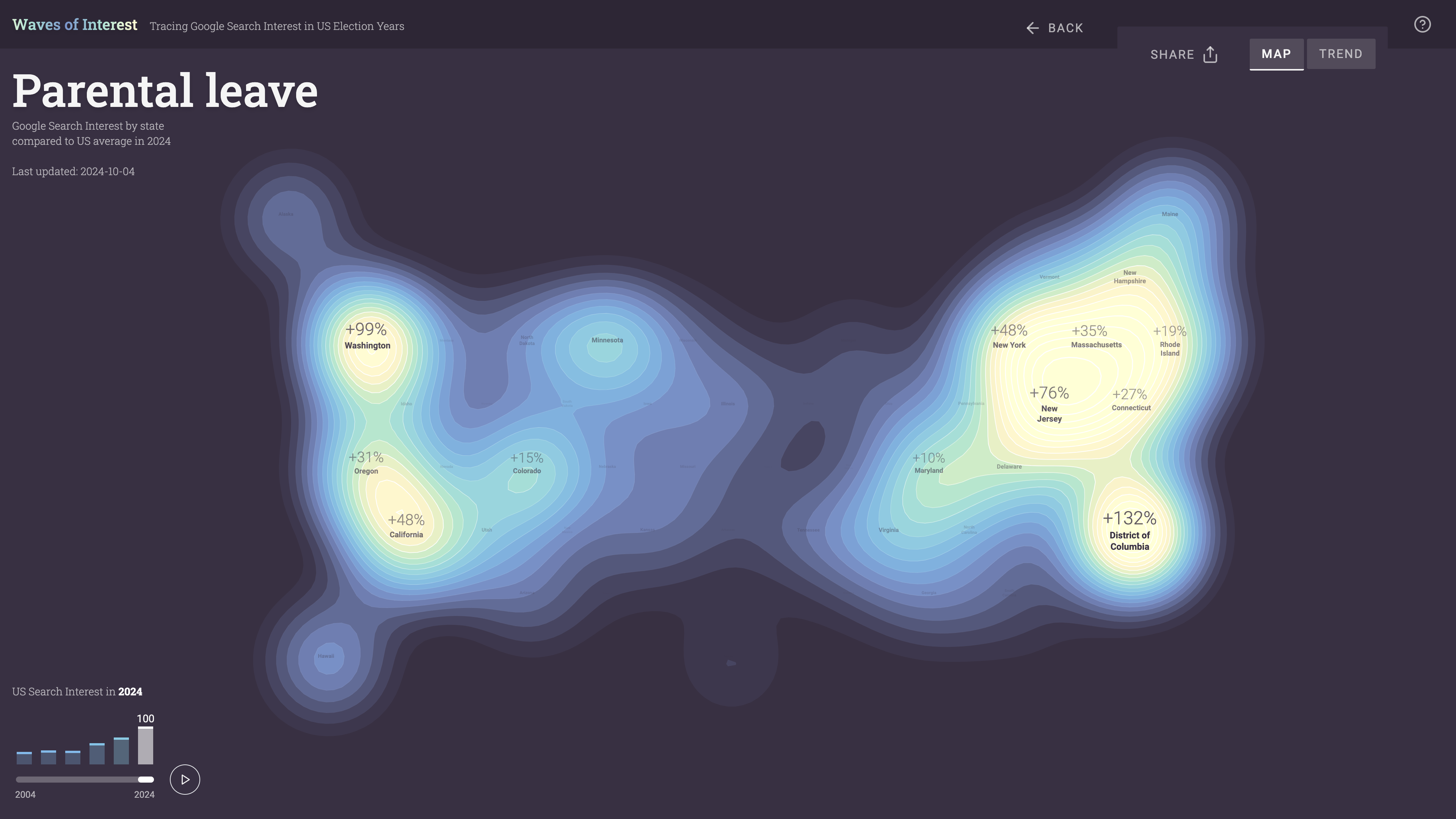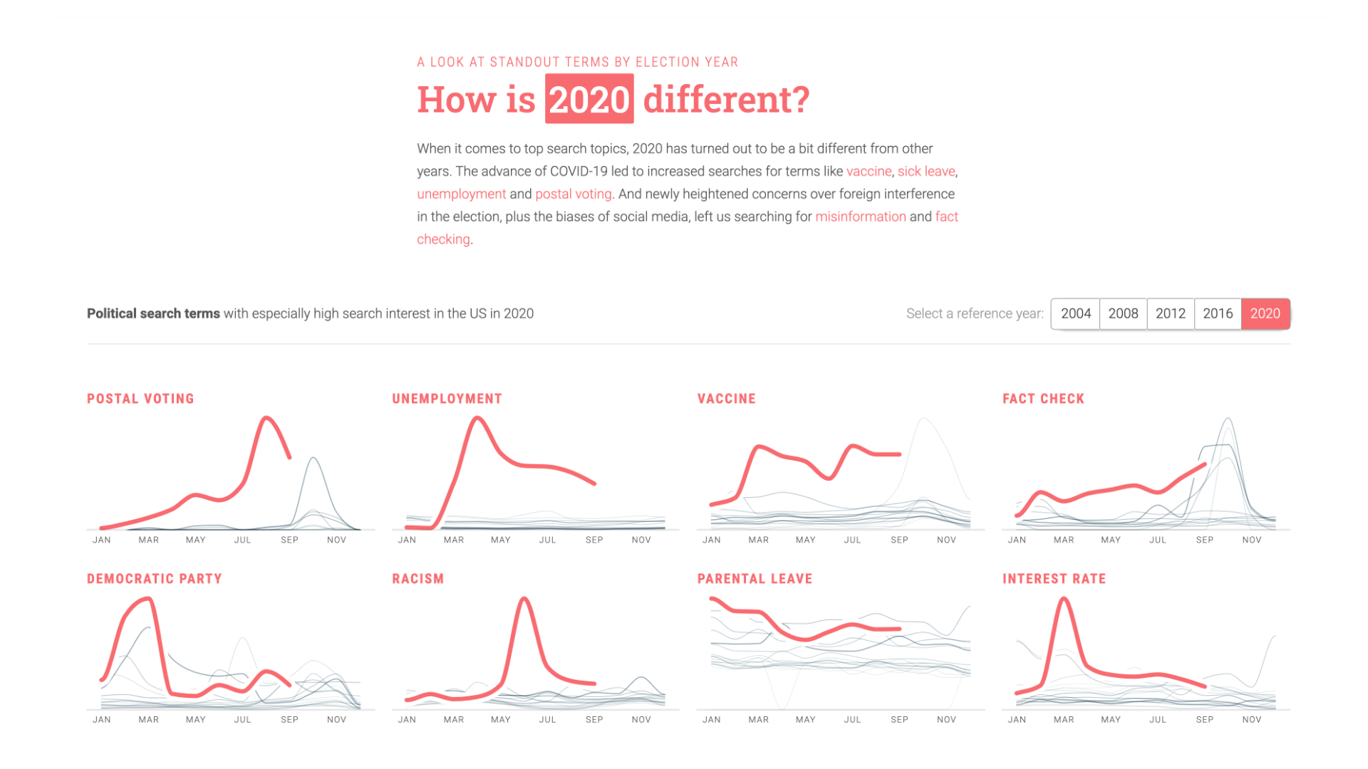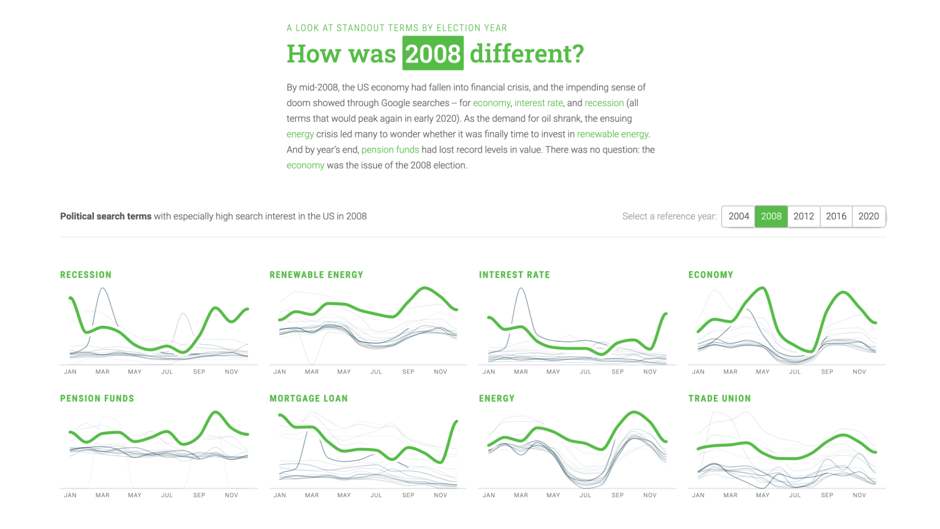 When Google News Initiative reached out to do a project for the US elections with Google Trends data, my first thought was to escape the frantic day-by-day realtime news cycle and make it really long-term.