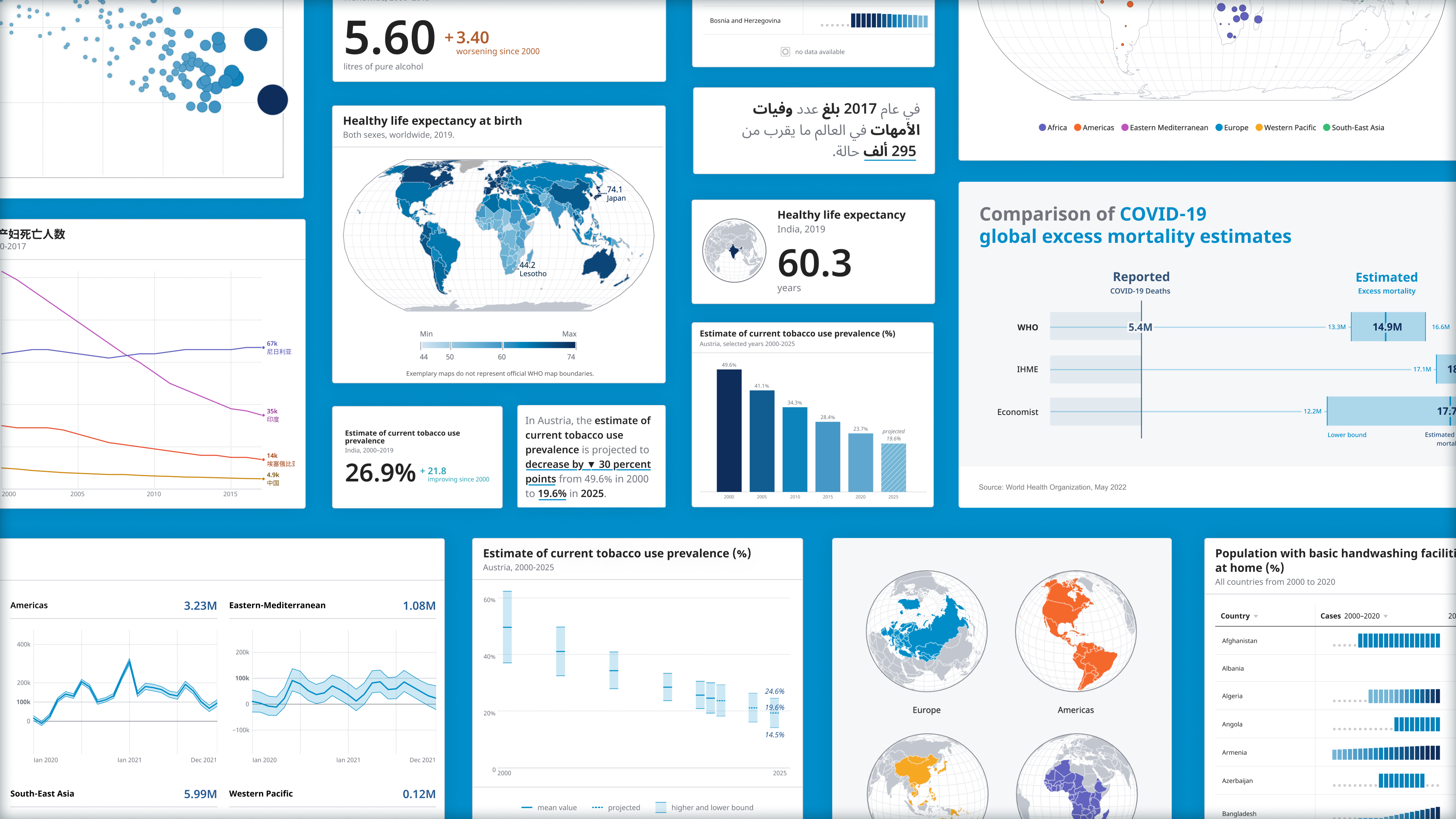 Developed for the data.who.int — the new home for WHO's public health data — the WHO Data Design Language defines building blocks and techniques for creating rich, informative, accessible and equitable information experiences.