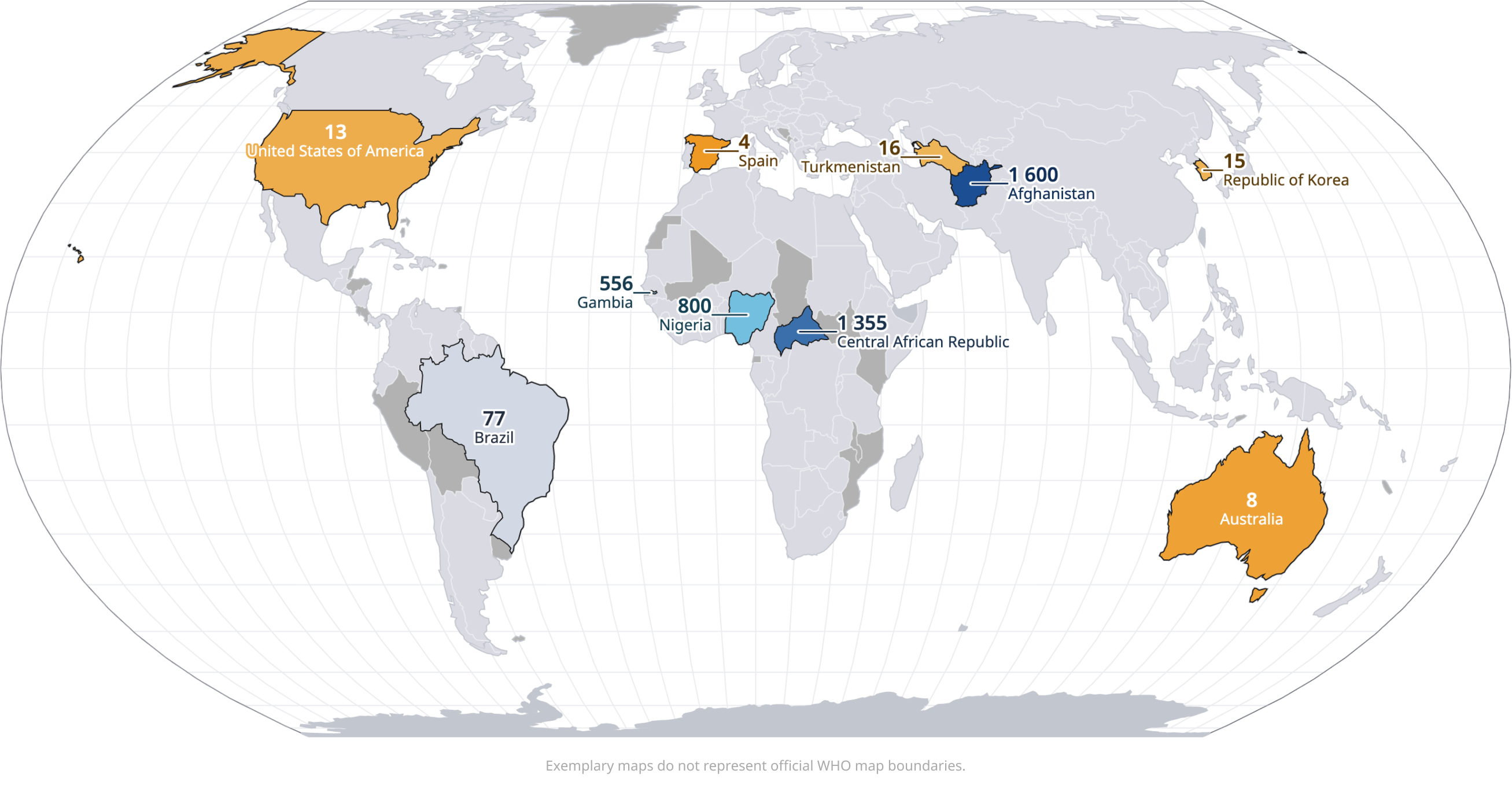 Building on the WHO brand color palettes, we designed a set of accessible, clear and easily distinguishable color schemes — on-point for the specific domain of WHO health data, culturally aware, and robust in a large variety of conditions.